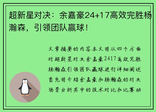 篮网首战战胜雄鹿,迎来新赛季首胜摘要:篮网在新赛季首战中战胜雄鹿,赢得了新赛季的首场胜利。本文章将从比赛的背景、关键表现球员、进攻和防守两方面分析篮网的胜利,并对这场比赛进行深入解析。1、比赛概况篮网在新赛季首战中迎来了对阵雄鹿的挑战,经过一场激烈的比赛,最终以一定的优势取得了胜利。这场比赛中,篮网展现出了强大的团队实力和顽强的比赛态度,为球迷呈现了一场精彩的比赛。2、关键表现球员在这场比赛中,篮...